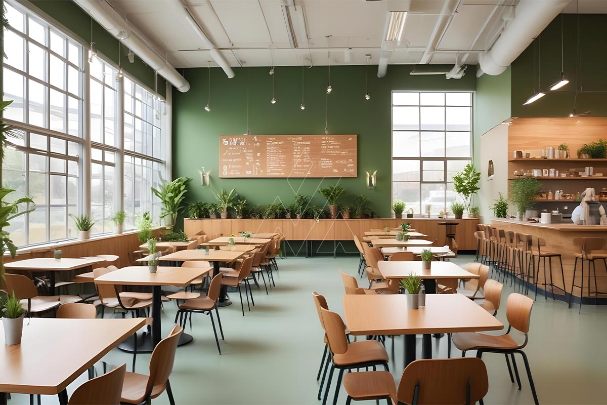 To help visualize your perfect cafeteria, browse through our cafeteria interior design photos. These images showcase various styles, from modern cafeteria interior design to cozy, functional spaces. Whether looking for sleek, minimalist designs or vibrant, artistic touches, these photos inspire all cafeterias and cafes.